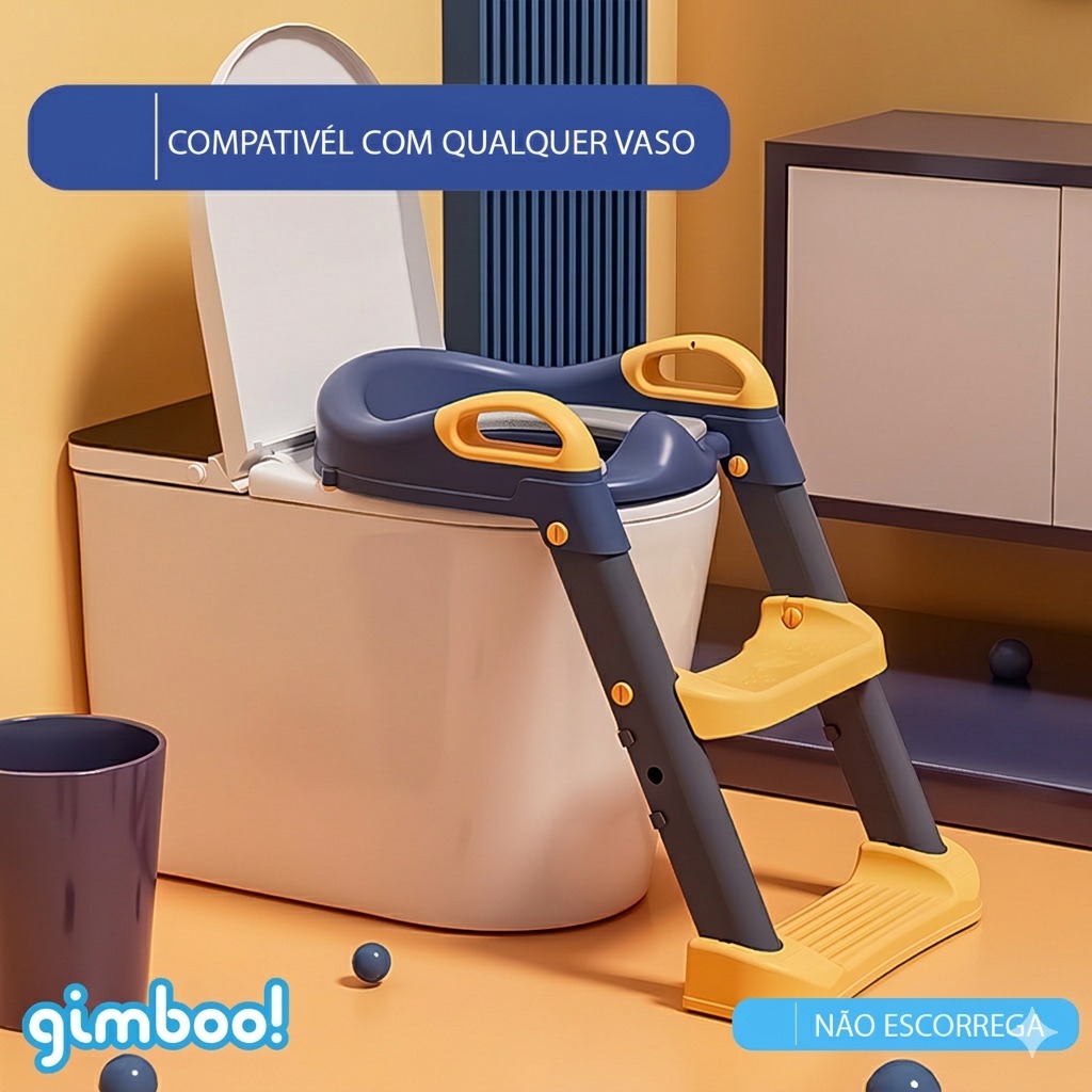 O Assento Redutor Infantil Gimboo transforma qualquer vaso sanitário adulto em um assento seguro e confortável para crianças. Com escada dobrável integrada, almofada macia e base antiderrapante, seu filho vai ao banheiro com total independência e segurança.