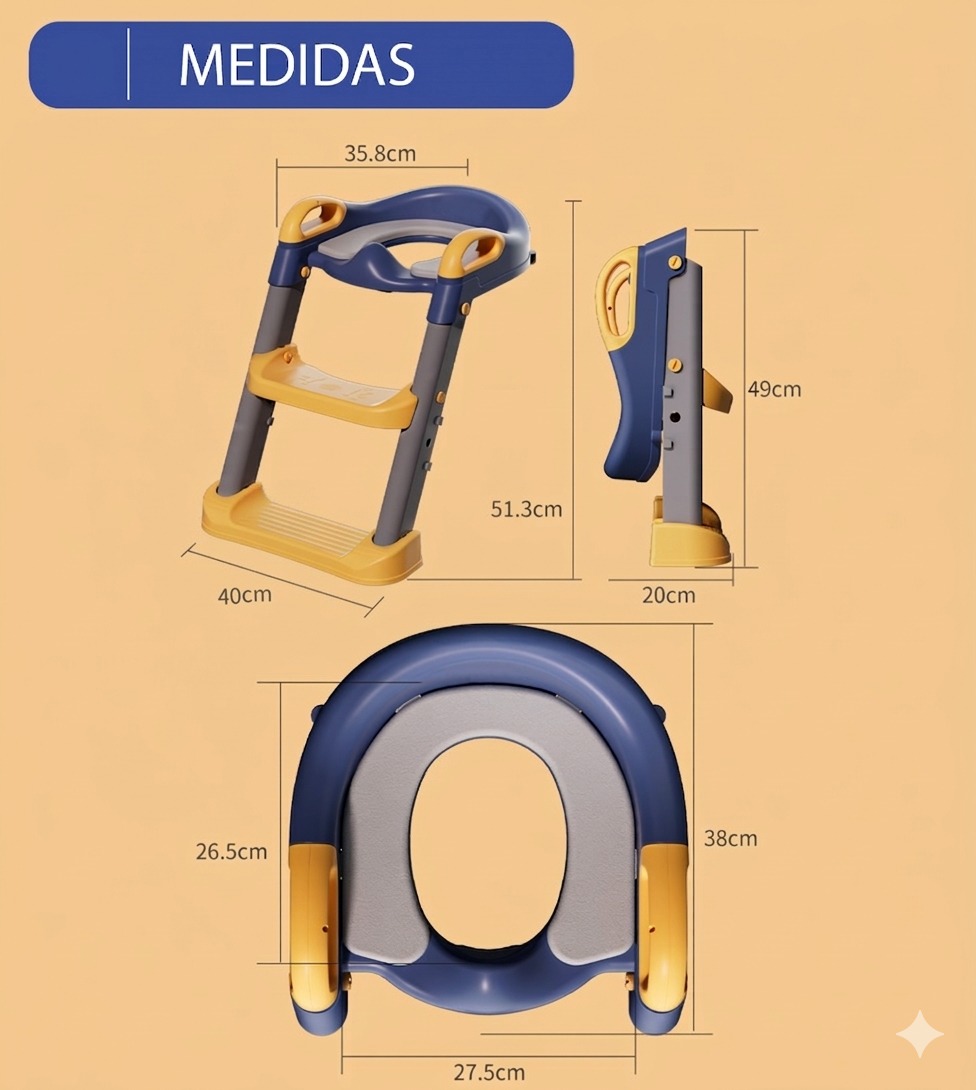 Assento redutor com escada dobrável integrada — autonomia, conforto e segurança para crianças a partir de 18 meses.